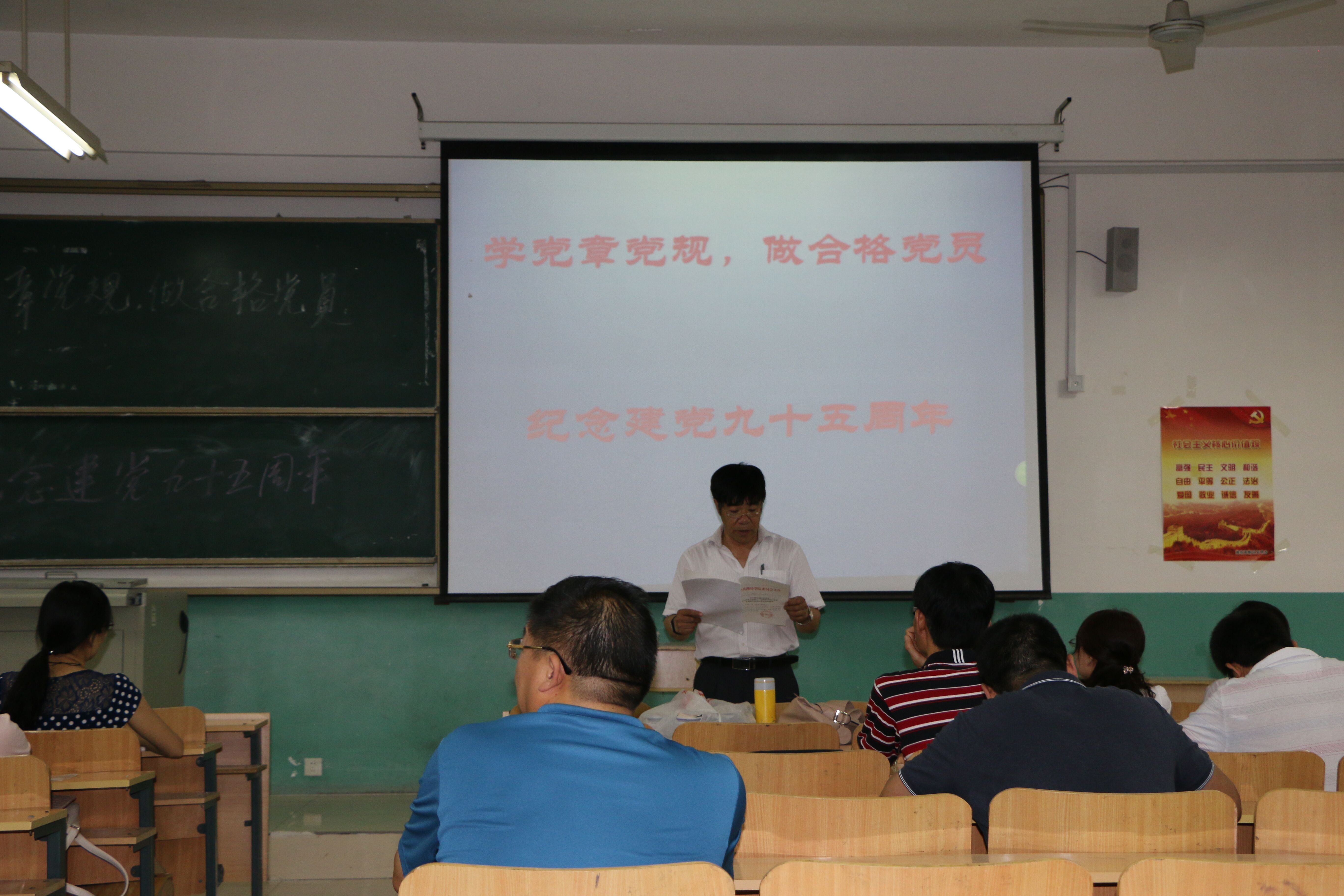 教工二支部负责人结合教学、科研工作实际,向支部全体成员作了题为“加强基层党组织建设,向党的95岁生日献礼”的专题党课,强调加强支部组织建设的重要意义,对进一步建设学习型、服务型基层党组织提出了规划和设计,对支部学习计划和执行情况进行了通报说明,对下一步的学习实践进行了布置和要求。